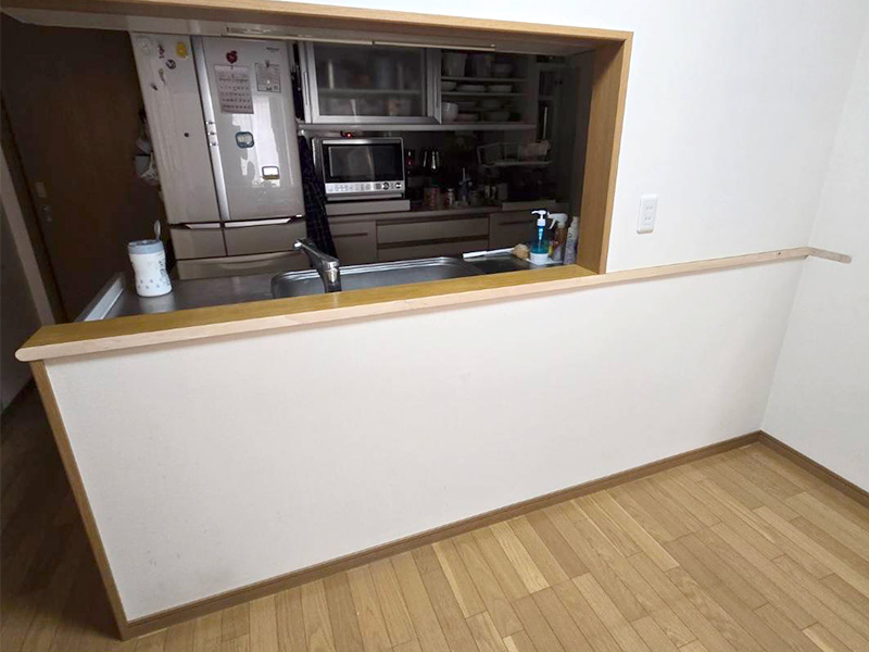 キッチンカウンターをカットして、家具が置きやすいスッキリ空間に