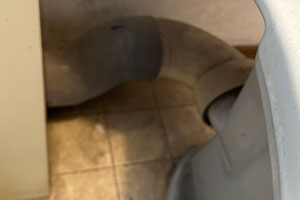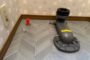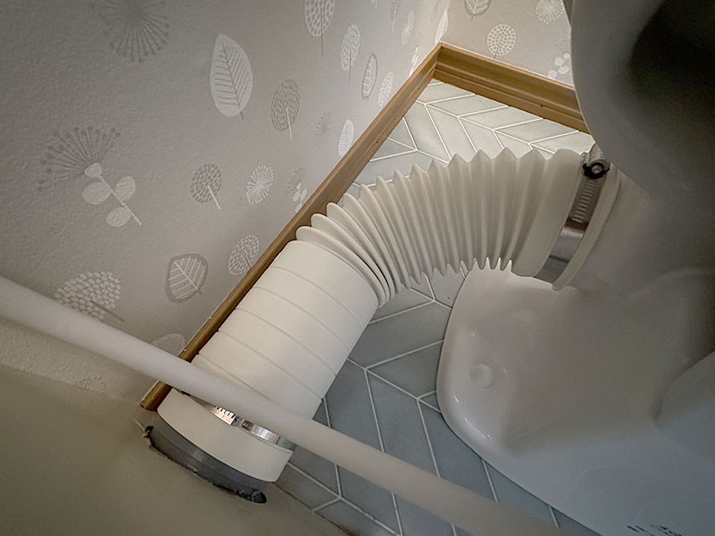 床上排水の2階にはマンションリフォーム用の便器にアキレスジョイントを使用し、排水管に接続しました。